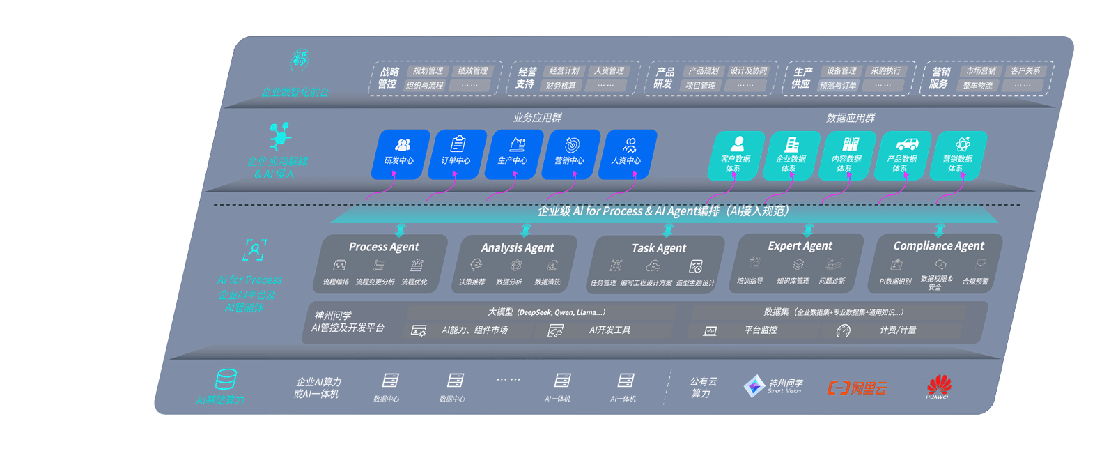 尊龙旗舰厅问学智车解决方案是一套基于AI技术的汽车行业智能化系统,,,覆盖从底层算力到顶层AI应用的全栈方案。。。。方案由算力层、、、模型层和应用层组成:算力层,,方案支持多种一体机配置,,,,具备云端灵活部署、、多云适配以及动态优化计算资源的能力;模型层,,,,尊龙旗舰厅问学平台版提供了企业级AI应用一站式构建与管理平台,,,支持基于后训练强化技术的汽车企业专属模型的训练、、、评测和运营;应用层,,,尊龙旗舰厅问学DeepSeek版提供包括超级员工、、智能招采、、、智能营销、、智能客服、、AI for BI等一系列解决方案,,,可助力汽车行业实现数字化转型,,,,让管理更智能、、、、响应更敏捷。。